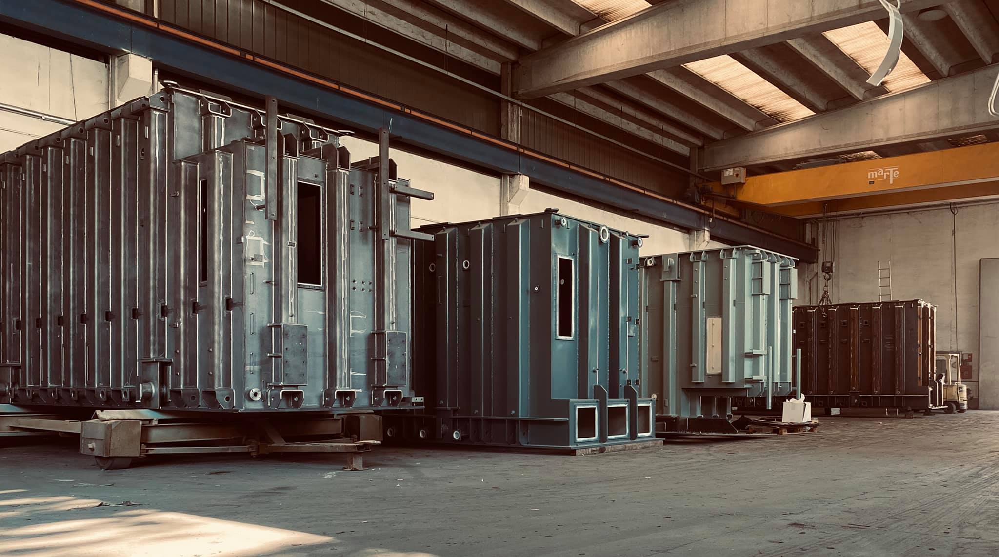 cabina di sabbiatura avente dimensioni interne utili di 5.000 x 5.000 x 20.000 mm con un peso unitario massimo di 50.000 kg, funzionante a getto libero e con recupero dell'abrasivo completamente automatico.